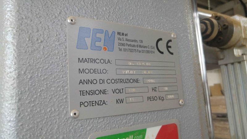 SaleWoodworking machinery > Other equipmentProducer & type : REM 06 PILOT 20.08 Status : Used Year of manufacture : 2006